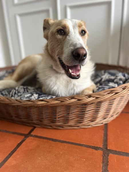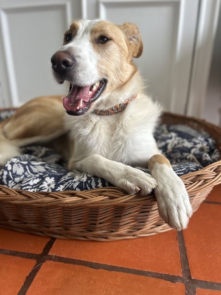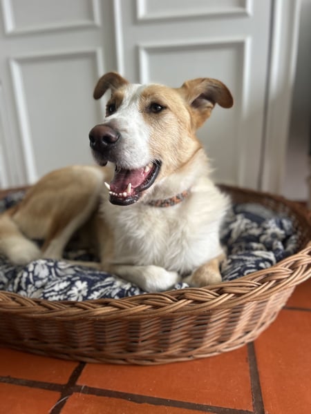 Juno hat eine lange Reise hinter sich. Wir lernten ihn bereits im Oktober 2024 im staatlichen Tierheim im Norden Portugals kennen – einem trostlosen Ort, an dem er monatelang in einer viel zu kleinen Box lebte. Erst im Februar 2025 durfte er diesen Ort endlich hinter sich lassen, doch auch im Kennel vergingen Monate, ohne dass er seine Menschen berühren durfte. Ohne eine einzige Anfrage. Nun endlich konnte er auf den Tierschutzhof unserer portugiesischen Partnerorganisation mimodogs reisen und kann dort zeigen, wer er wirklich ist.