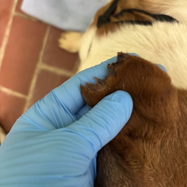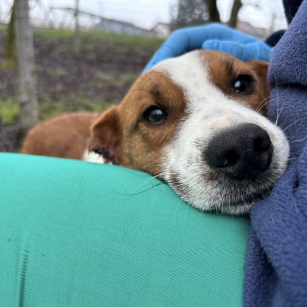 Chip ist ein Bub, laut Tierarztschätzung ca. 6 Monate alt (geb. 04.08.2025), wiegt 11kg und ist 30cm groß. Er ist ein Mischling, vermutlich mit einer Save Brake (Posavski gonic). Er wird voraussichtlich ausgewachsen mit Kopf bis zum Knie, mit einem Gewicht von ca. 18-20kg.