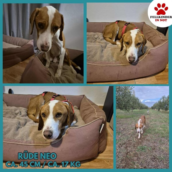 Neo ist ein sehr freundlicher und aufgeweckter Rüde. Er kuschelt für sein Leben gern. Neo ist draußen sehr aktiv, kommt im Haus aber sehr gut zur Ruhe. Für Neo suchen wir eine aktive Familie, die auch mit seinem vermutlich vorhanden Jagdtrieb umzugehen weiß. Mit den anderen Hunden kommt er prima zurecht.