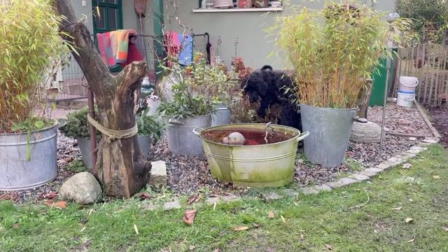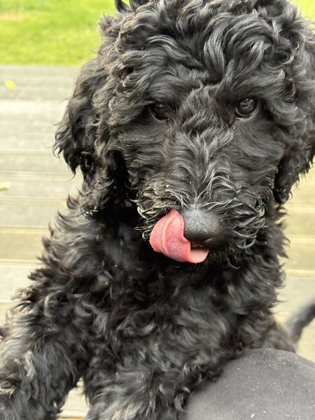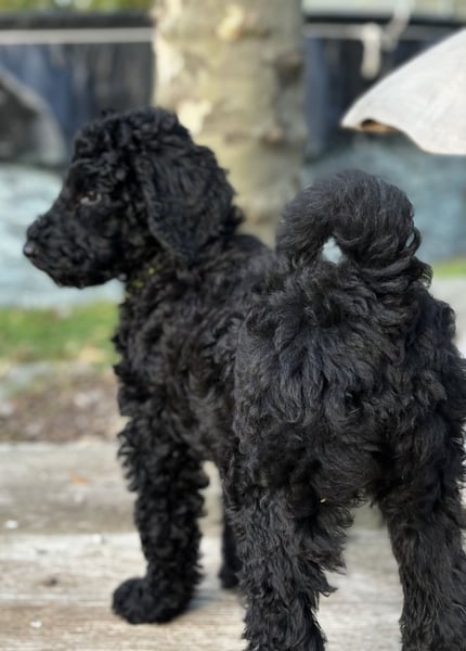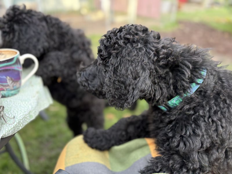 Wir sind drei schwarze Grosspudel.