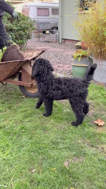 Wir sind drei schwarze reinrassige Grosspudelwelpen aus einer Verbandszucht.