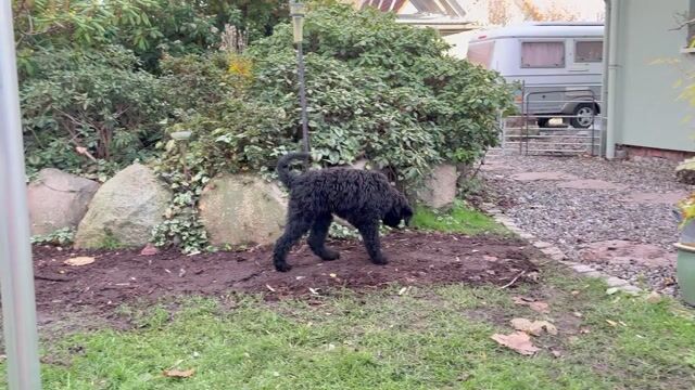 Im Garten tollen wir total gerne mit uns oder dem Kater.