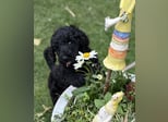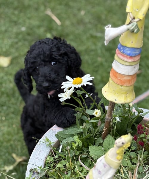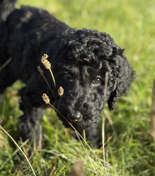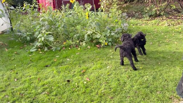 Meine Brüder sind richtige Raufbolde, ich muss mich ganz schön ins Zeug legen. Aber im Garten haben wir richtig Spaß. Wenn wir das Klappern der Keksdose hören, dann rennen wir aber los, denn es gibt auch ein Leckerchen oder es wird gekuschelt. Momentan üben wir auch die Stubenreinheit. Es klappt schon prima, wir gehen nach Wecker, immer wieder raus. Mit dem großen Geschäft ist es uns schon ins Blut übergegangen.