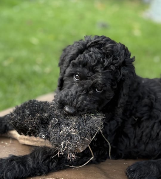Momentan üben wir auch die Stubenreinheit. Es klappt schon prima, wir gehen nach Wecker, immer wieder raus. Mit dem großen Geschäft ist es uns schon ins Blut übergegangen.