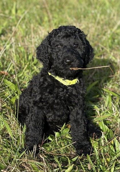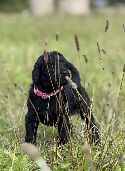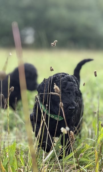 Man, man diese Woche fing schon gut an. Jeden Tag, bürsten, Ohren fummeln und alles auf einem großen Tisch. Nachmittags kam dann aber die Welpenwiese, das ist riesig. Mittwoch sind wir dann mit Camper und ohne Oma und Mama zur Hundeschule gefahren. Da gab es einen großen Platz mit einigen Spielgeräten, das haben wir alles erkundet und einen großen Spaß gehabt. Nächsten Tag wurden wir einzeln getestet, was wir für ein Charakter und was für ein zu Hause haben wollen. Nun sind schon 5 Welpen zu einem neuen Zuhause zugeordnet. Meine Schwester Fibie und der Fargo suchen jetzt noch ihren Heimathafen. Aber erstmal bleiben wir noch hier, denn die Zuchtabnahme wird noch gemacht.