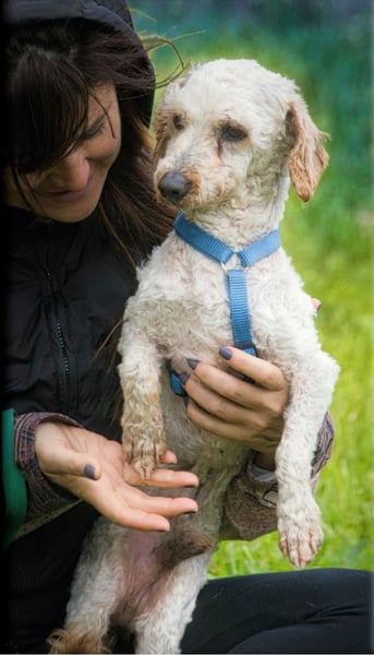 Dürfen wir Ihnen Bunny vorstellen: einen Pudelmix-Rüden, geboren im Jahr 2021, mit einer Schulterhöhe von etwa 40 cm. Bunny wurde ausgesetzt und in einem sehr schlechten Pflege- und Ernährungszustand auf einer stark befahrenen Straße gefunden – in einer Situation, die für ihn höchst gefährlich war. Inzwischen lebt er in einem privaten Tierheim in Portugal, wo er liebevoll betreut wird und nun auf die Chance auf ein sicheres und liebevolles Zuhause wartet.