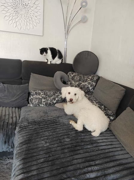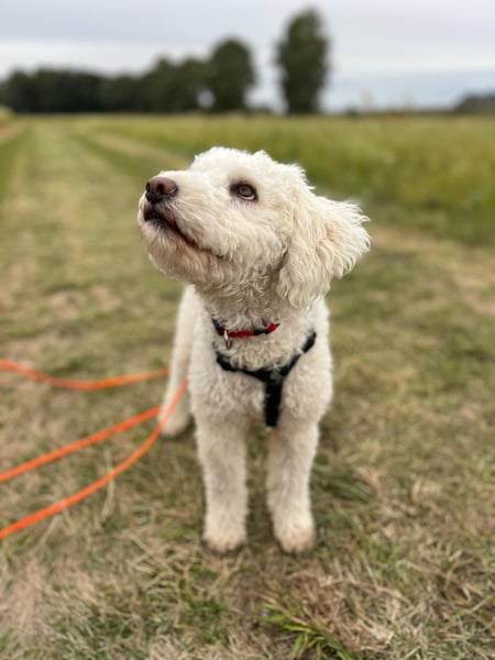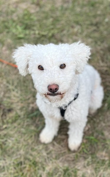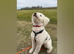 Die hübsche Snowie (geb. 01.06.2024, ca. 35 cm, 9 kg) ist ein quirliger Pudel-Mix mit besonderem Look: Sie hat eine verkürzte Rute und wunderbar weiches Fell, das kaum haart, aber regelmäßige Pflege benötigt.