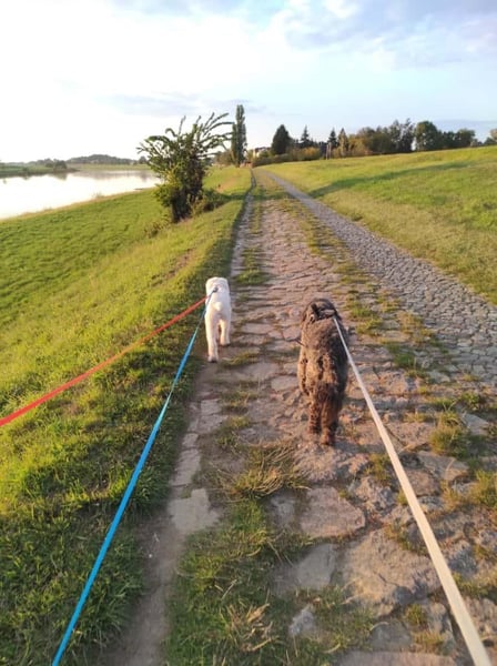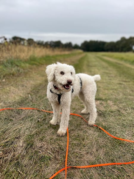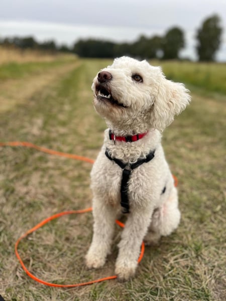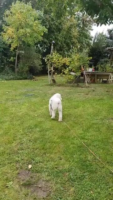 Snowie ist stubenrein bei regelmäßigem Auslauf und fährt problemlos im Auto mit. Treppensteigen klappt ebenfalls. Beim Spaziergang läuft sie im Wald oder auf Wiesen relativ entspannt, liebt es zwischendurch ihre wilden 5 Minuten auszuleben, reagiert im Straßenverkehr aber noch ängstlich – Autos und Fahrradfahrer werden teilweise angebellt. Hier braucht sie klare Führung, Training und doppelte Sicherung.