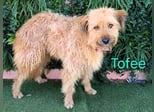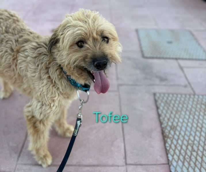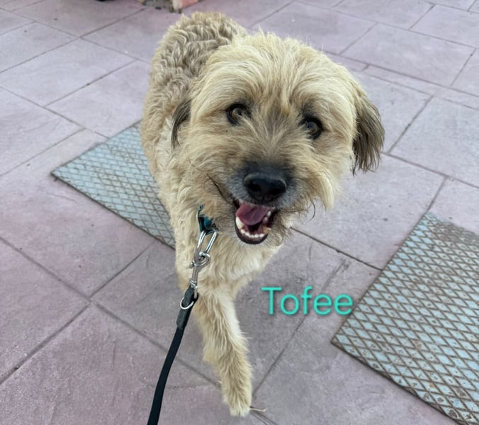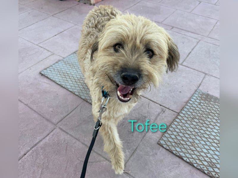 Tofee ist ein sympathischer, fröhlicher und ruhiger Hund. Mit verspielten Hunden spielt er gern, zieht sich aber auch gerne zurück, wenn er seine Ruhe möchte, und schläft dann stundenlang entspannt in seinem Bett. Als er ins Tierheim kam, war er deutlich ängstlicher und nicht an Menschen gewöhnt. Heute ist Tofee sehr anhänglich und liebevoll. Er liebt es, gekrault zu werden, und wenn jemand zu ihm ins Gehege kommt, stellt er sich auf die Hinterbeine, um Streicheleinheiten zu bekommen, und wedelt glücklich mit dem Schwanz. An stressigen Tagen im Tierheim (z. B. bei Gewitter oder vielen Besuchern) kann er bellen, wenn sich ihm fremde Menschen nähern, zeigt aber keine Aggression. In ruhigen Situationen lässt er sich auch von Unbekannten gern überall anfassen und genießt die Zuwendung. Er versteht sich mit allen Hunden, auch mit aktiven Welpen und größeren Artgenossen. Für ihn wünschen wir uns eine erfahrene Familie, idealerweise mit einem oder mehreren ausgeglichenen Hunden, die ihm helfen, Vertrauen zu fassen. Anfangs kann Tofee etwas misstrauisch sein (wenn auch nicht mehr so stark wie zu Beginn seiner Rettung), aber sobald er angekommen ist, zeigt er sich als sehr freundlicher und verschmuster Begleiter.