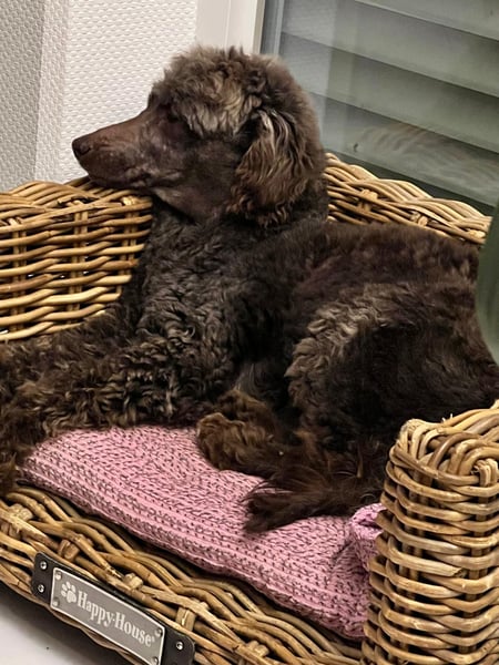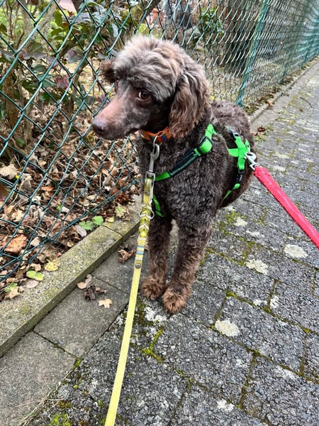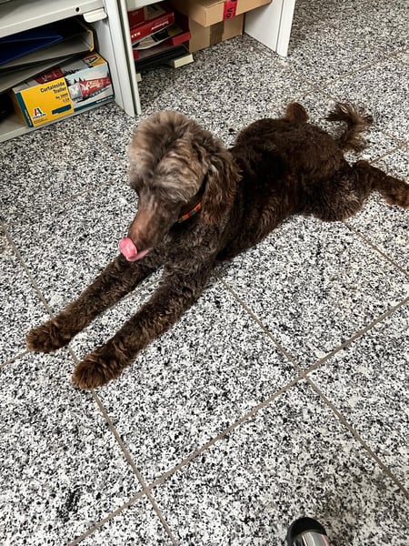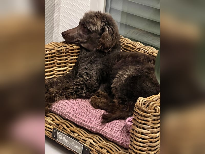Ich bin eine freundliche Pudeldame, in der tollen Farbe Braun. Ich habe in den letzten Jahren viele Welpen zu Welt bringen müssen, die billig verkauft wurden. Dadurch hab ich nicht viel gelernt. Aber ich bin ein freundliches, liebes Mädchen. Zurzeit lebe ich im schönen Reinheim, auf meiner Pflegestelle. Hier leben einige Hunde und auch Katzen. Mit allen verstehe ich mich sehr gut. Aber so schön es hier auch ist, ich hätte schon gerne meine eigene Familie.