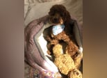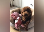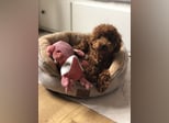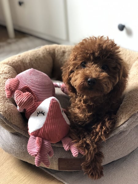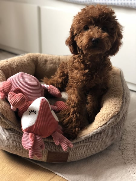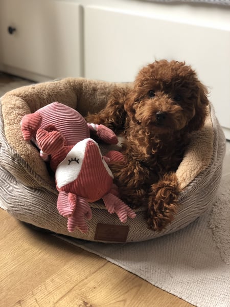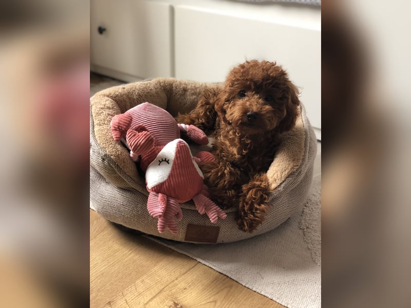 Toy Pudel Red Aprico Zwergpudel Hündin im seltenen Mahagoni rot