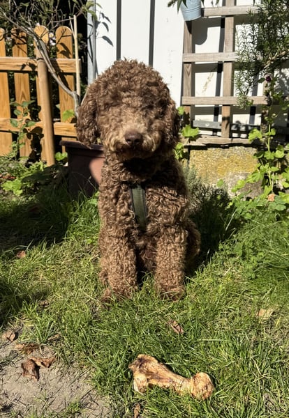 Wir arbeiten aktuell daran, dass er auch mal allein bleiben kann. Das ist jedoch noch nicht zuverlässig möglich, wird aber immer besser. Was auch schon gut funktioniert, sind Kommandos wie Abruf, Sitz, Decke und ein klares Nein, wenn er von etwas ablassen soll.