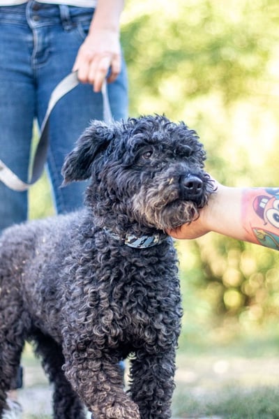 Emma ist etwa drei Jahre alt, ein aufgeweckter Pumi/Puli-Mix mit klugen Augen und einem feinen Gespür für ihre Umgebung. Ganz typisch Hütehund bringt sie Aufmerksamkeit und Sensibilität mit – Eigenschaften, die sie zu einer wunderbaren Begleiterin machen.