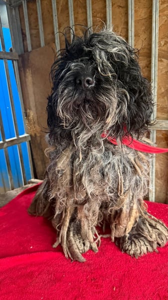 Ozzy ist ein ganz lieber, freundlicher, menschenbezogener, aufgeweckter und am Anfang noch etwas schüchterner Rüde. Etwas zurückhaltend, aber wenn er merkt es passiert ihm nichts, dann will er nur gestreichelt werden und genießt die Zuneigung die man ihm schenkt. Ozzy ist total verwahrlost, sobald die Witterungsverhältnisse besser werden, kommt er zum Friseur. Ozzy ist absolut verträglich mit anderen Hunden.