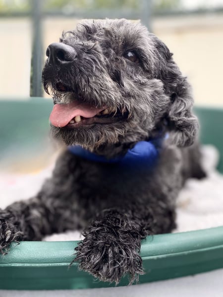 Flocki ist ein kleiner 6-jähriger, kastrierter Rüde mit ca. 35 cm Schulterhöhe und einem Gewicht von rund 11,5 kg. Mit seinem schwarzen Fell, seiner kompakten Statur und vor allem seinem süßen Gesicht erobert er Herzen im Sturm.