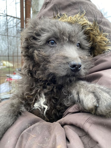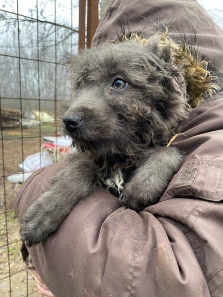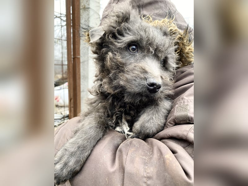 FINN - Puli-Mix Welpe, allergikerfreundlich, mit grünen Augen sucht ein Zuhause voller Liebe