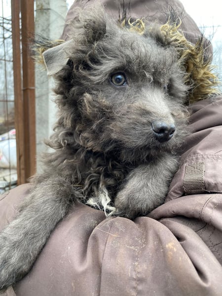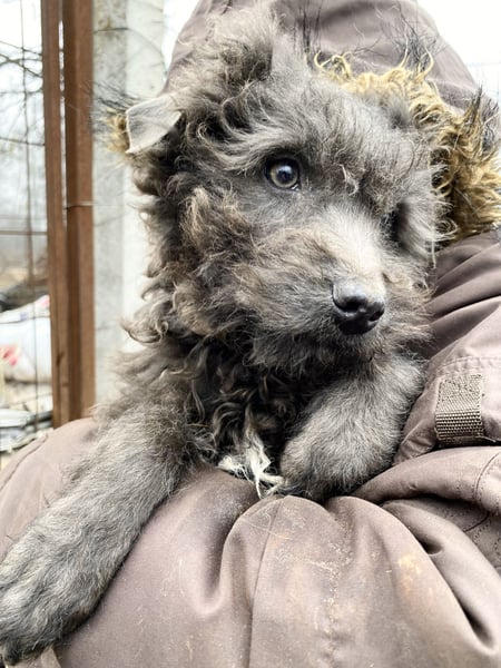 Der kleine Finn (aktuell 30 cm & 3,7 kg) ist ein ganz besonderer Welpe: Mit seinen leuchtend grünen Augen und seinem braunen, lockigen Fell sieht er einfach zum Verlieben aus. Doch sein Start ins Leben war alles andere als leicht.