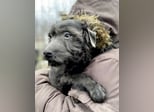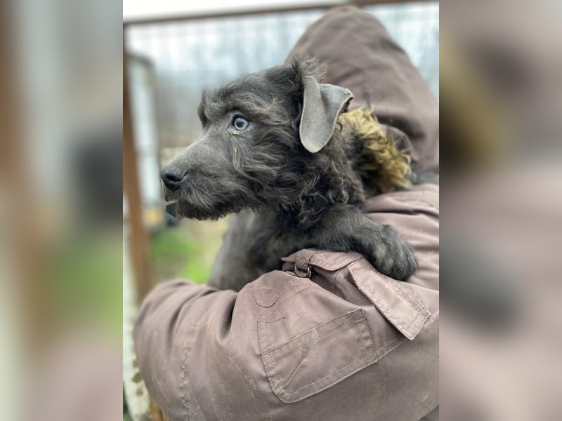 Der zuckersüße Leo (aktuell 30 cm & 4 kg) ist ein kleiner Puli-Mix mit braunem, lockigem Fell und wunderschönen grünen Augen – ein echter Hingucker und Herzensbrecher.
