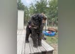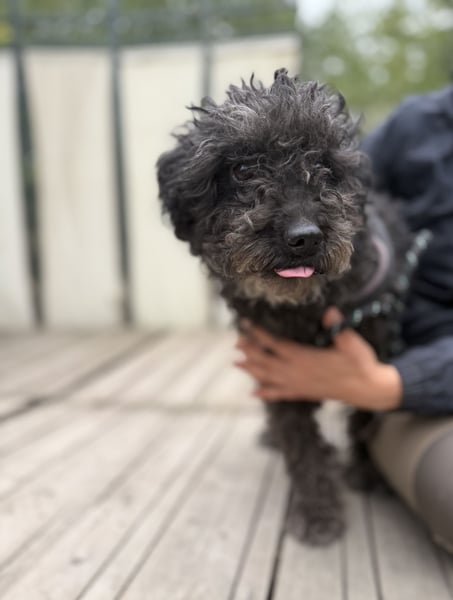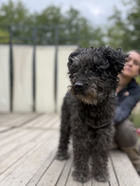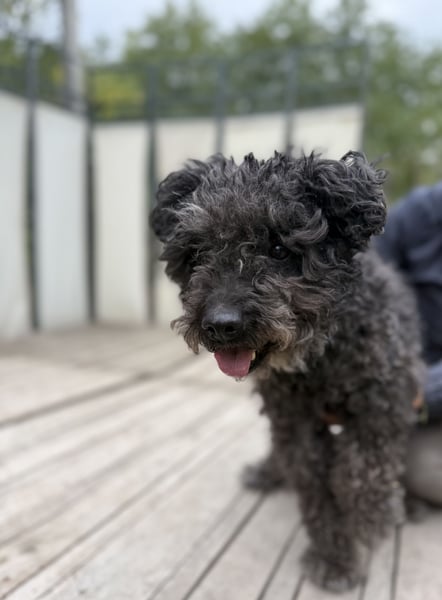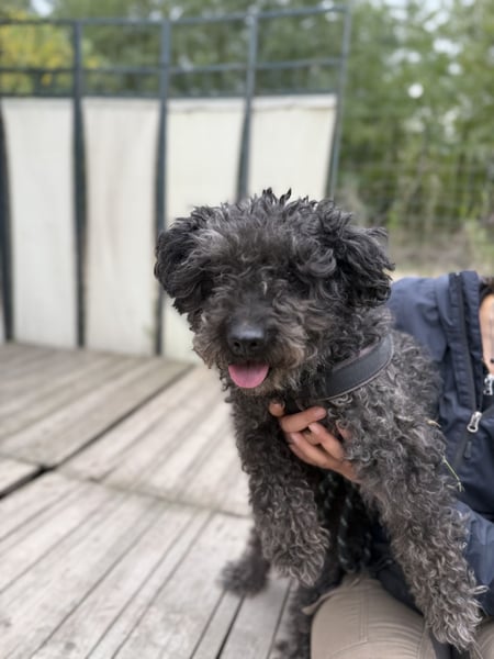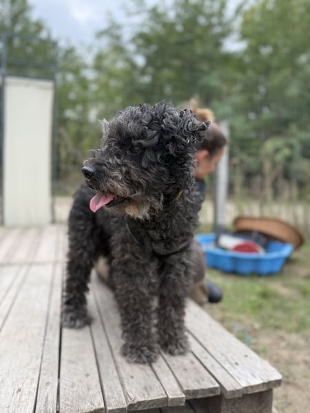 Buksi ist eine etwa 45 cm große und rund 12 Kilogramm schwere Hündin mit mittellangem, schwarzem Fell und einem puliähnlichen Aussehen. Sie wurde am 24. Februar 2015 geboren und lebt seit dem 17. März 2023 im Tierheim in Ungarn. Davor hatte sie ein behütetes Zuhause bei einer älteren Dame, die sie gemeinsam mit ihrer Hundefreundin Léna liebevoll umsorgte. Doch das Schicksal meinte es nicht gut: Als die Besitzerin schwer erkrankte, blieb ihr letztlich keine Wahl – sie musste sich schweren Herzens von ihren geliebten Hunden trennen.
