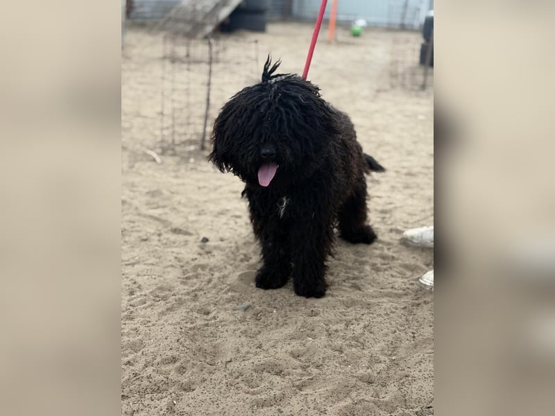 Godo ist ein feiner Kerl, er hat viel Nachholbedarf an Zuwendung und Aufmerksamkeit. Er ist ein lieber, freundlicher, munterer und netter Bursche, der nun gerne gemeinsam mit seinen Menschen die Welt erkunden möchte. Das an der Leine laufen klappt schon prima, muss aber noch weiter ausgebaut werden, ebenso einige Dinge vom Hundeeinmaleins. Doch er ist schlau und will gefallen, somit wird er das Versäumte schnell nachgeholt haben, wenn man ihn liebevoll anleitet. Godo wird seinen neuen Menschen bestimmt ein toller Gefährte sein und es wird Freude machen, mit ihm seine Zeit zu verbringen und ihm ein paar Tricks beizubringen. Vielleicht hat Godo auch Spaß an Agility oder anderem Hundesport. Seine neuen Zweibeiner sollten sich vorab über die tolle Rasse Puli informieren. Mit seinen Artgenossen versteht sich Godo gut und wird aktuell (12.3.2026) in ein gemischtes Rudel integriert.