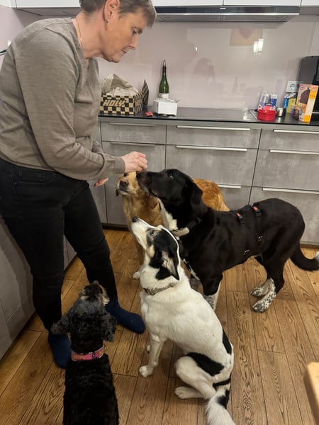 Seit Anfang November 2025 lernt Chia nun das Leben auf ihrer Pflegestelle kennen und ist dort so gut angekommen. Chia hat sich gut eingefunden und in den Familienalltag eingelebt. Eine süße und lustige Junghündin, die nun nur noch ihre eigene Familie sucht!