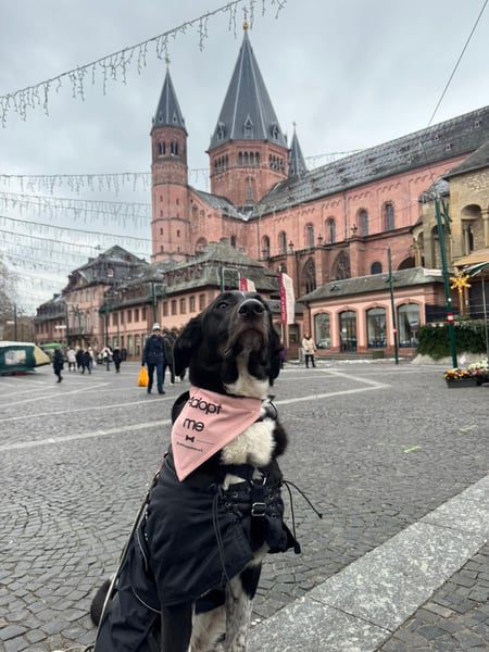 Draußen lernt Chia die Welt kennen. Neues ist anfangs aufregend oder kurz verunsichernd, doch mit ruhiger Anleitung läuft sie gut mit und orientiert sich hier an Ihren Menschen. Die Pflegestelle übt aktuell die Orientierung an der Leine und Chia macht tolle Fortschritte. Sie meistert auch anspruchsvollere Situationen wie Aufzüge, Fahrradläden bis hin zum Hauptbahnhof, wenn man sie unaufgeregt begleitet.