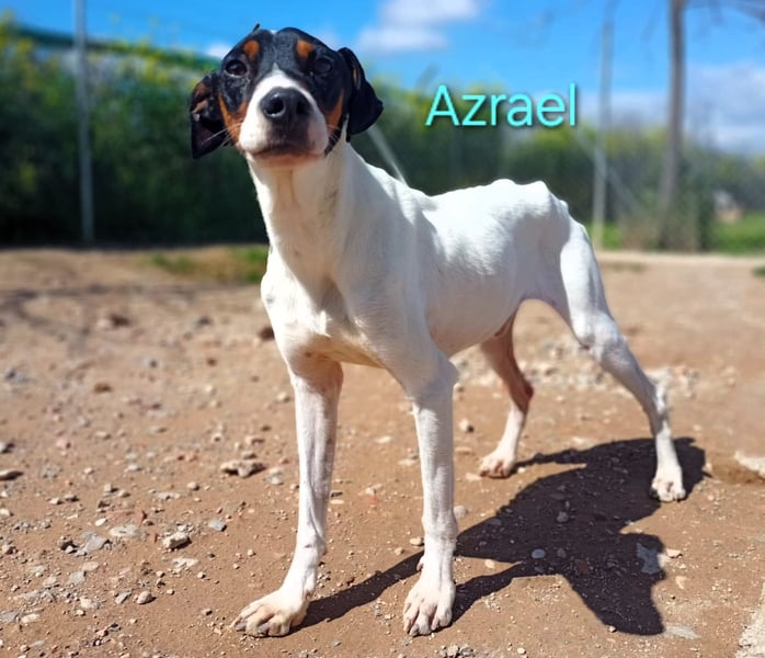 Azrael ist sehr lieb, aber noch ängstlich. Er wurde zusammen mit Eclipse aus einem Animal-Hoarding-Fall gerettet und hatte bisher kaum Kontakt zu Menschen. Er versteckt sich hinter seinem Bett oder sucht einen Ort, an dem er sich sicher fühlt. Er zeigt jedoch niemals Aggression – selbst wenn er Angst hat, lässt er sich anfassen, auch von Fremden. Mit anderen Hunden versteht er sich sehr gut: Er ist sozial, freundlich, unterwürfig und überhaupt nicht dominant. Er hat viel durchgemacht und braucht eine Familie mit Erfahrung im Umgang mit ängstlichen Hunden, die ihm mit Geduld, Verständnis und Liebe helfen, wieder Vertrauen in Menschen zu fassen. Er läuft bereits gut an der Leine.