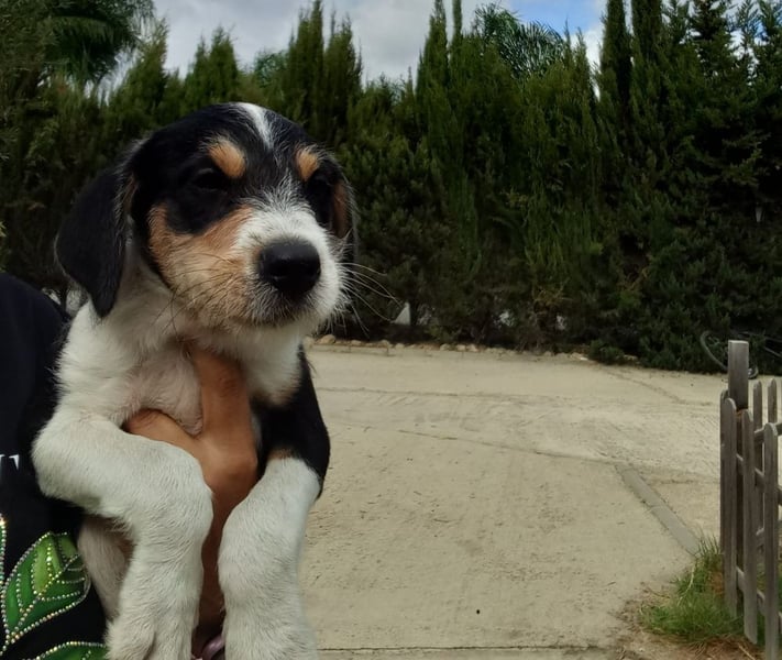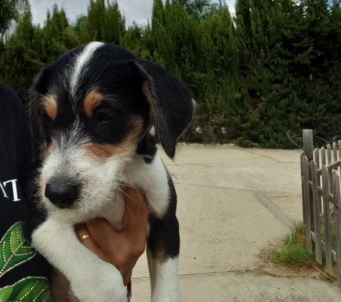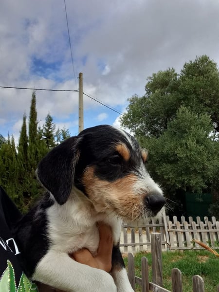 Ringo ist das schwarze Schaf seiner Familie, aber das ist auf sein Äußeres beschränkt, denn ansonsten ist er genauso verschmust, lustig und liebenswert wie seine Geschwisterchen. Und offiziell sind sowieso alle vier tricolor, wenn auch mit verschiedenen Farbanteilen. Wer Ringo überhaupt ist? Ein entzückender, 3 Monate alter (Stand Oktober 2025) Bodeguero-Mischling, der mit zwei Schwestern und einem Bruder in Huelva ausgesetzt wurde.