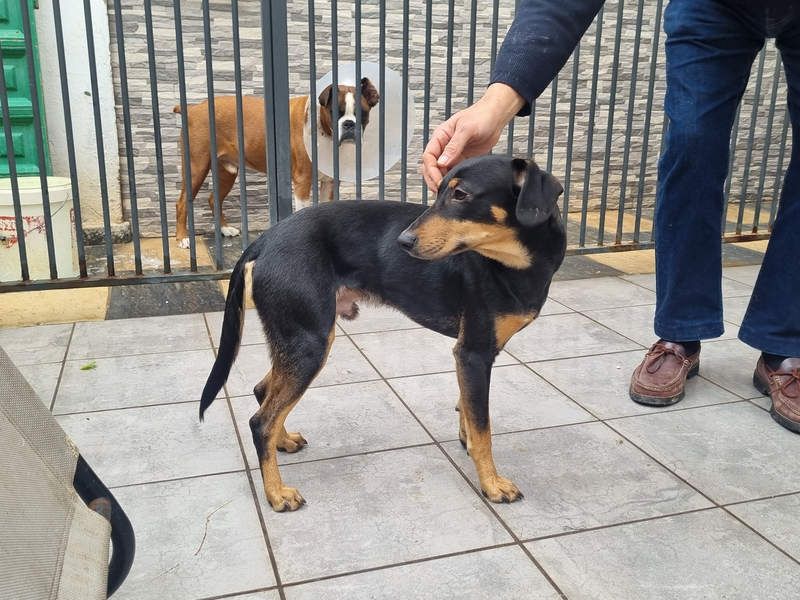 Vor der Tür angebunden war Bardot, Brigitte war die Hündin auf der anderen Straßenseite. Die Tierschützerin nahm natürlich beide Hunde erst einmal bei sich auf. Bei ihr leben noch sechs weitere Hunde und sieben Welpen, die auch etwas Hilfe beim Start ins Leben benötigen.