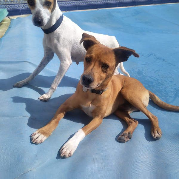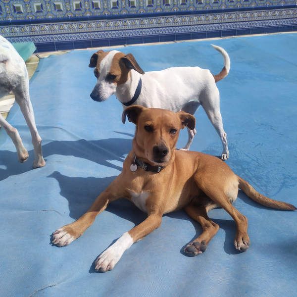 Leonardo wurde zusammen mit 2 weiteren Hündinnen, die gesondert beschrieben werden, während starken Unwettern in Andalusien einfach „entsorgt“, indem alle 3 einfach über den Zaun des Tierheims geworfen wurden. Eine freiwillige Mitarbeiterin des Tierheims nahm die 3 erstmal zu sich nach Hause und päppelte sie auf. Als sie wieder kräftig genug waren, wurden sie wieder zurück ins Tierheim gebracht.