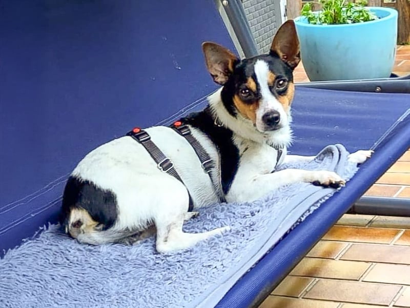 Ratón ist ein wunderschöner, kleiner Bodeguero-Rüde, der seit Juli 2025 auf einer liebevollen Pflegestelle in Hochspeyer lebt.