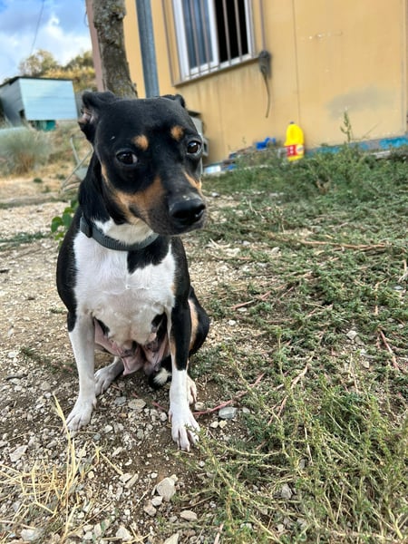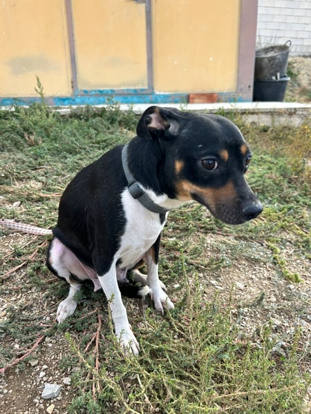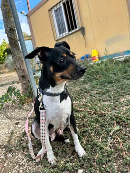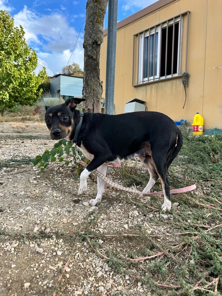 Dürfen wir vorstellen? Das ist Thais, eine etwa 2-jährige, zarte Bodeguero-Mischlingshündin (geb. 09/2022), die mit ihren 8,5 kg und einer Schulterhöhe von 38 cm perfekt in jedes Herz – und jeden Haushalt – passt.