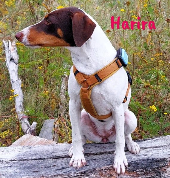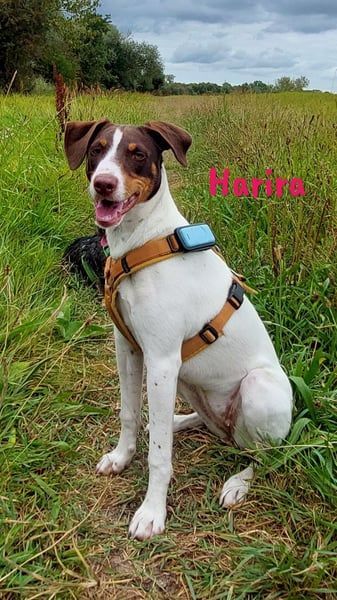 Aufgrund gesundheitlicher Umstände suchen wir für Harira, die in ihrem jetzigen Zuhause "Ria" genannt wird, ein neues Zuhause. Harira ist eine im Dezember 2024 geborene Mischlingshündin aus Südspanien und Ende Mai nach Deutschland gekommen. Sie ist eine verschmuste, aktive Junghündin, die draußen Bewegung liebt und drinnen angenehm ruhig sein kann. Harira ist clever, neugierig und steckt mitten in ihrer Junghundephase – sie möchte noch viel lernen und braucht klare, liebevolle Anleitung. Mit anderen Hunden spielt sie gern und zeigt sich insgesamt sehr kontaktfreudig. Katzen sollten nicht im Haushalt leben; mit Kindern hat sie bisher keine langfristigen Erfahrungen gemacht. Sie hat erste Tricks im Crossdogging gelernt, fährt problemlos Auto und übt gerade das Laufen am Fahrrad. Das Alleinebleiben klappt für kurze Zeit schon gut. Den Hundehort kennt sie ein- bis zweimal wöchentlich. Da sie bisher am Stadtrand lebt, braucht sie in der Stadt noch etwas Gewöhnung.
