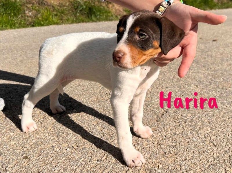 Harira und ihre Geschwister Pastela, Bissara, Hummus1, Kofte, Tajín und Cous Cous sind das Ergebnis einer ungewollten Trächtigkeit. Sie leben noch bei der Mutter auf einem Bauernhof, werden aber bald in den Shelter ziehen müssen, weil das Grundstück nicht sicher ist. Wir vermuten, dass sie nicht größer als 40cm werden und einen großen Bodegueroanteil haben. Sie sind daher sicherlich verspielte, clevere und verschmuste Hunde, die bei der richtigen Haltung sehr gute Familienbegleiter werden können.