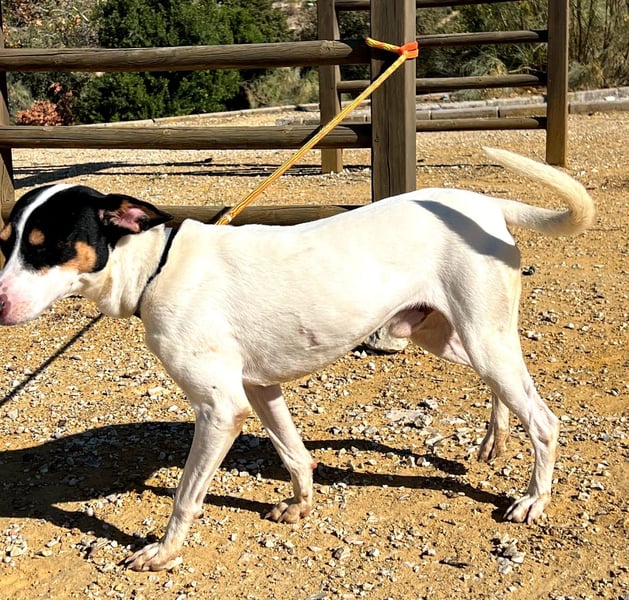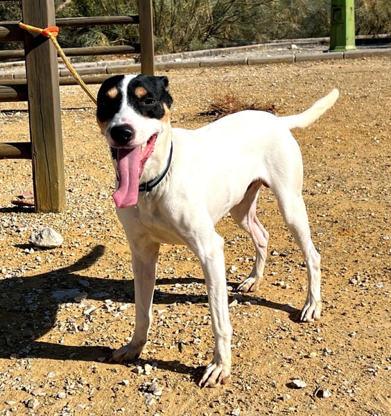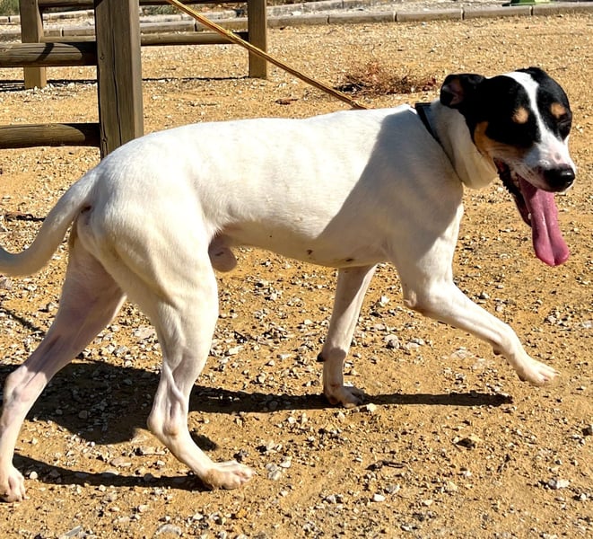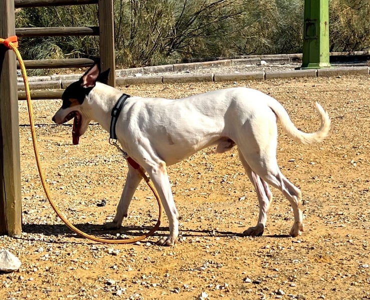 Bestia trägt einen Namen, der kaum weniger zu ihm passen könnte, denn er ist ein ausgesprochen lieber, sanfter und freundlicher Hund. Geboren im September 2021 und etwa 45 cm groß, ist er ein typischer Vertreter des Andalusischen Bodegueros: aktiv, klug, menschenbezogen und voller Lebensfreude. Doch bis er all das zeigen durfte, musste er viel durchstehen.