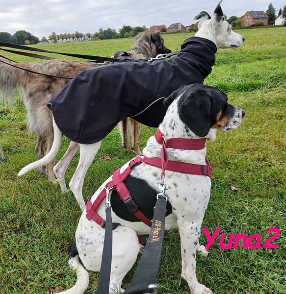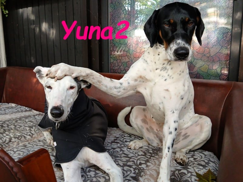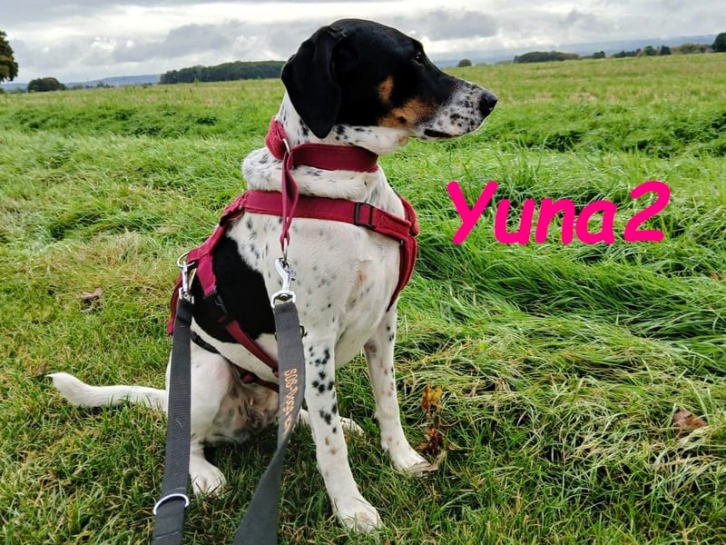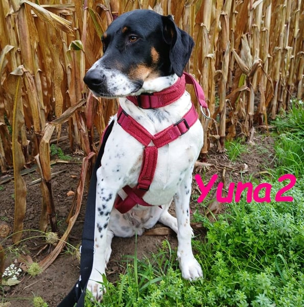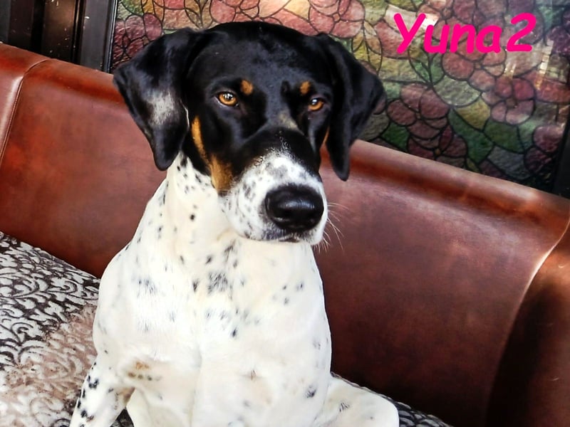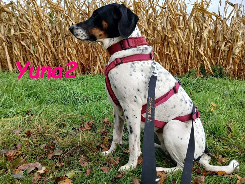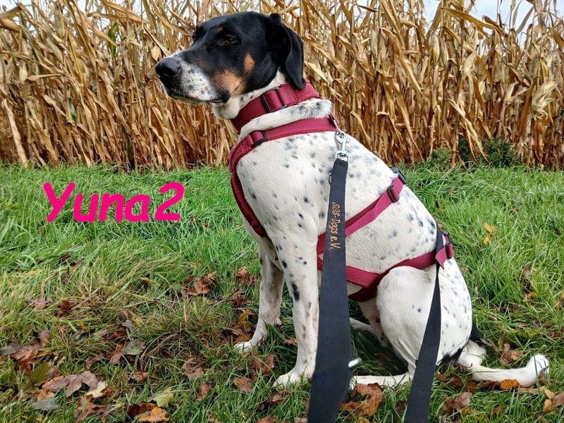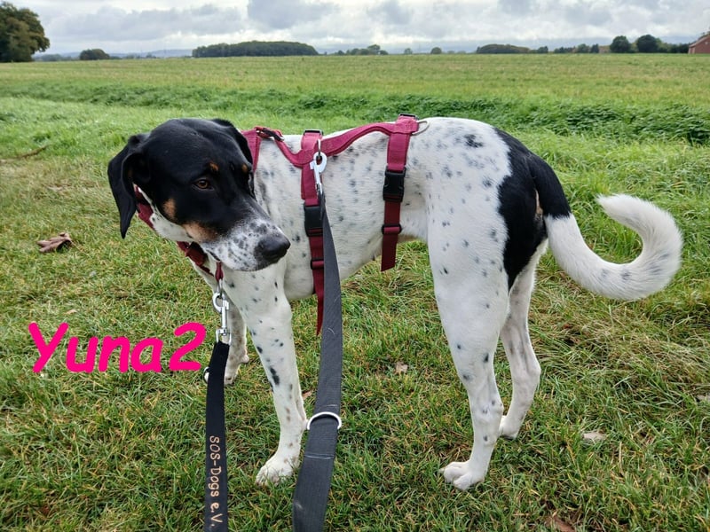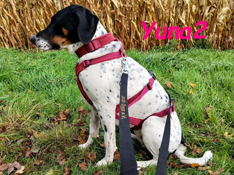 Yuna2 ist eine liebevolle und verspielte Hündin, die jede Menge Energie und Lebensfreude mitbringt! Mit ihren 18 Monaten ist sie voller Neugier und Wunsch nach Abenteuer, und sie sucht sich einen engen Gefährten, der mit ihr durch dick und dünn geht. Yuna2 ist anhänglich und verschmust und genießt es, Zeit mit ihrem Menschen zu verbringen. In Gesellschaft anderer Hunde spielt sie gerne; jedoch zeigt sie deutlich, dass sie als Einzelhund am besten aufgehoben wäre. Ihre temperamentvolle Art lässt sie oftmals nicht akzeptieren, wenn ihr Kumpel Leon gerade nicht spielen möchte. Trotz ihrer Kräfte kann sie auch schnell zur Ruhe kommen, wenn sie merkt, dass es Zeit zum Entspannen ist. Draußen zeigt sie sich von ihrer besten Seite, orientiert sich an Leon und trägt zu einem harmonischen Spaziergang bei. Radfahrern begegnet sie mittlerweile gelassen, solange sie an der Leine geführt wird. Ihre Freude am Toben kann jedoch manchmal dazu führen, dass sie sich in freier Wildbahn ungestüm verhält; hier benötigt sie liebevolle Anleitung. In ihrem neuen großen Garten kann sie sich endlich richtig austoben und hat sich zu einem muskulösen Energiebündel entwickelt. Yuna2 liebt Spielzeug, insbesondere alles, was sich bewegt ? Blätter und vorwitzige Mäuse erwecken ihre Jagdinstinkte. Sie ist ein wahrer Schatz, ein Pointer, der die Natur und die kleinen Dinge des Lebens zu schätzen weiß. Wer ländlich lebt, Spaß am Spazierengehen hat und einen Garten für Yuna2 zur Verfügung stellen kann, wird mit dieser treuen Hündin viel Freude haben. Falls Sie bereit sind, Ihre Kniekehlen als bevorzugten Schlafplatz für Yuna2 zu akzeptieren, könnte sie die perfekte Begleiterin für Sie sein! Kontakte zu Katzen und Kindern hat sie zwar noch nicht gehabt, doch ihre freundliche und aufgeschlossene Art wird Ihnen helfen, viele neue Abenteuer zusammen zu erleben. Yuna2 wünscht sich einen Platz als Einzelhund.