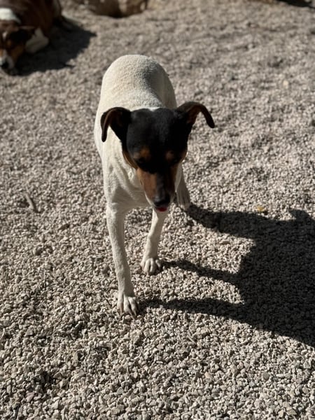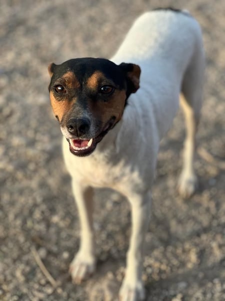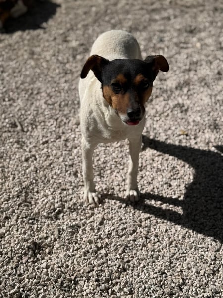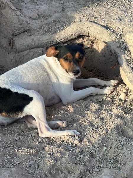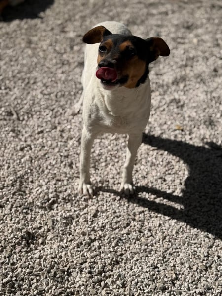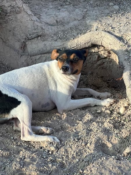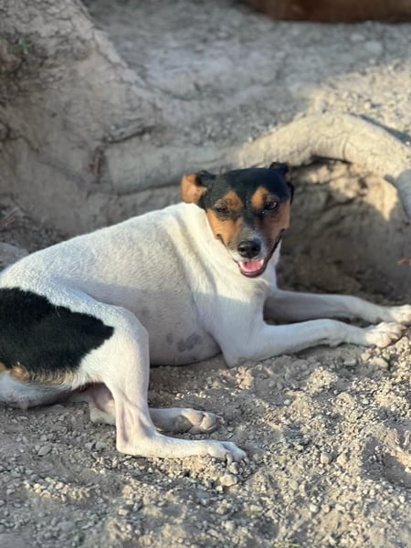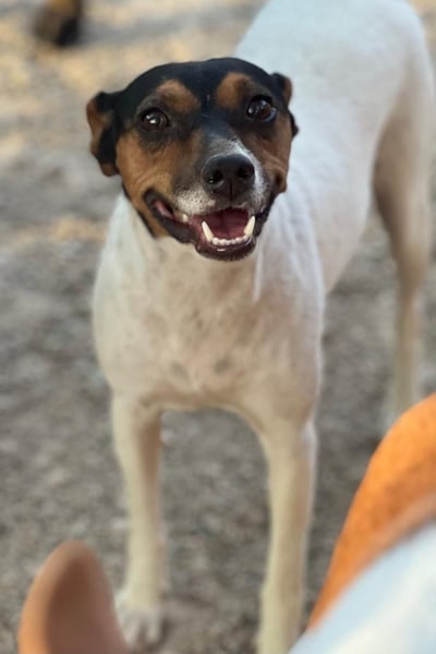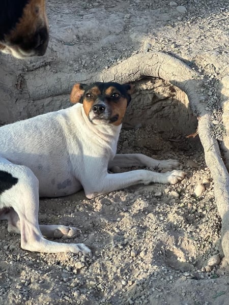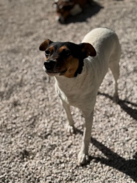 Pong ist eine hübsche, dreifarbige Bodeguero-Hündin, geboren ca.im März 2022, mit einer zierlichen Größe von ca. 33 cm und 9 kg. Seit Juli 2023 lebt sie im Tierheim bei Andres in Murcia – dabei wünscht sie sich nichts sehnlicher als einen ruhigen Platz, an dem sie ankommen darf.