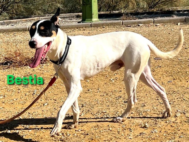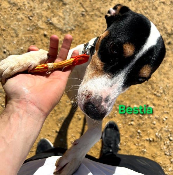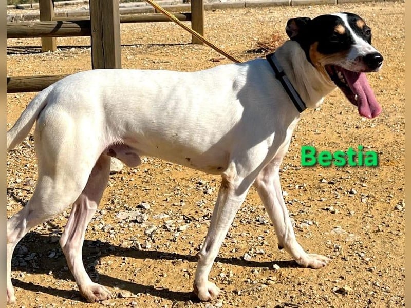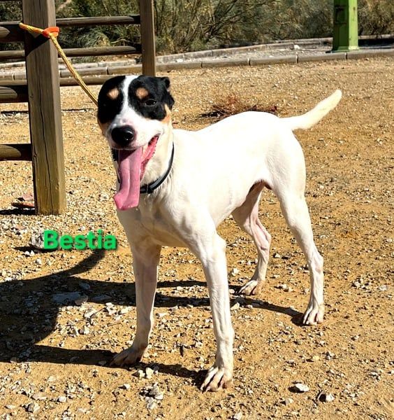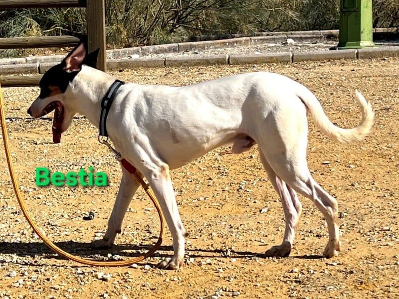 Bestia wurde aus dem sogenannten „Haus des Schreckens“ gerettet, wo die Hunde unter völlig verwahrlosten und unhygienischen Bedingungen in einem Patio gehalten wurden. Bestia war sogar angebunden, vermutlich um weitere Würfe zu verhindern, da viele unkastrierte Hündinnen um ihn herum waren. Heute beginnt für Bestia endlich sein neues Leben. Trotz allem, was er durchmachen musste, vermittelt er unglaublich viel Zärtlichkeit und Liebe. Wir hoffen, dass bald eine liebevolle Familie auf diesen süßen Hund aufmerksam wird – denn sein Name „Bestia“ (dt. „Bestie“) wird ihm keineswegs gerecht.