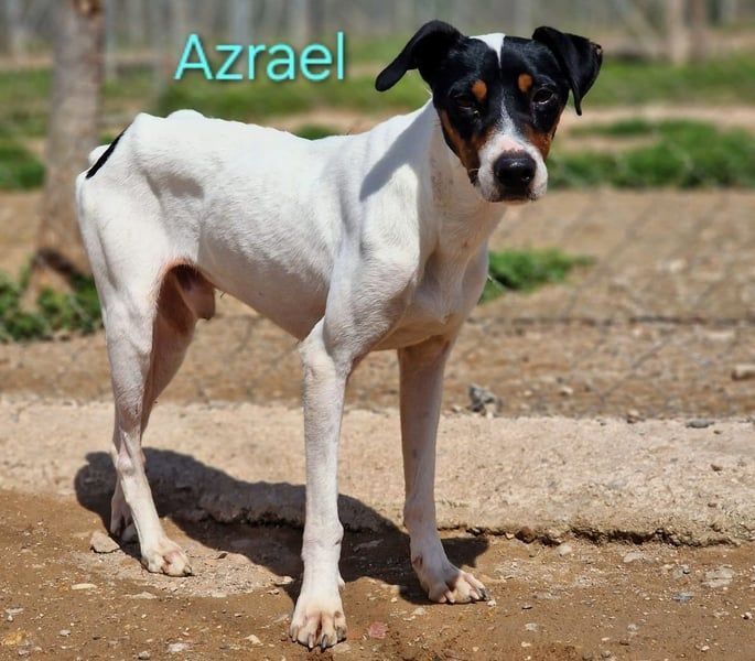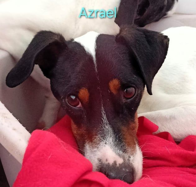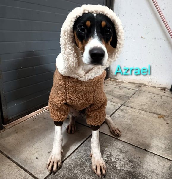 Azrael ist sehr lieb, aber noch ängstlich. Er wurde zusammen mit Eclipse aus einem Animal-Hoarding-Fall gerettet und hatte bisher kaum Kontakt zu Menschen. Er versteckt sich hinter seinem Bett oder sucht einen Ort, an dem er sich sicher fühlt. Er zeigt jedoch niemals Aggression – selbst wenn er Angst hat, lässt er sich anfassen, auch von Fremden. Mit anderen Hunden versteht er sich sehr gut: Er ist sozial, freundlich, unterwürfig und überhaupt nicht dominant. Er hat viel durchgemacht und braucht eine Familie mit Erfahrung im Umgang mit ängstlichen Hunden, die ihm mit Geduld, Verständnis und Liebe helfen, wieder Vertrauen in Menschen zu fassen. Er läuft bereits gut an der Leine.