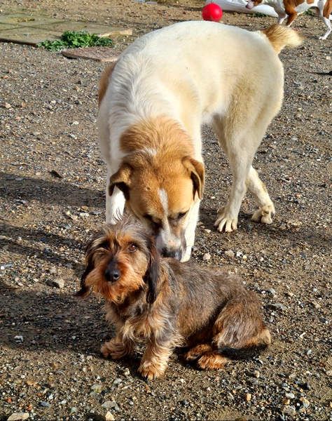 Vormittags, während dem Saubermachen der Zwingeranlage, dürfen alle Hunde gemeinsam nach draußen in den großen Auslauf, und hier liebt sie es ganz genüsslich, in ihrem Tempo alles abzuschnüffeln. Mit den anderen Hunden verhält sie sich sehr verträglich, ebenfalls eher unterwürfig, und wenn Tere oder Josephine herauskommen, bevorzugt sie sowieso die Nähe und den Kontakt zu Menschen. Sie läuft den beiden nach und beobachtet ihre geliebten Betreuerinnen ganz genau. Man muss beim Laufen fast ein bisschen aufpassen, denn Brisa läuft so nah an den Beinen, dass man sie versehentlich treten könnte. Oder sie macht „schwupps“ und lässt sich einfach vor den Füßen auf den Rücken fallen, um gestreichelt zu werden.
