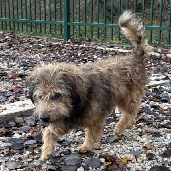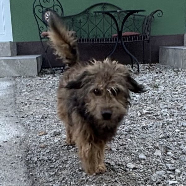 Er wurde im August 2025 in einem abgelegenen Dorf in Kroatien ausgesetzt gefunden. Wie bei all unseren Hunden wissen wir leider nichts über seine Vergangenheit, da er alleine auf der Straße gefunden wurde.