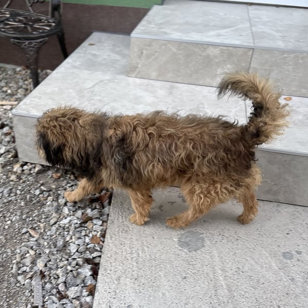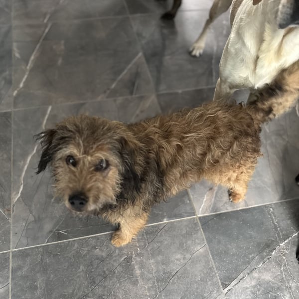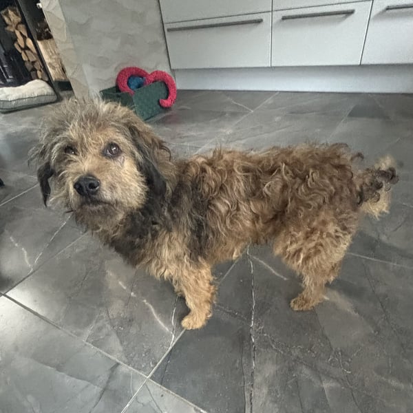 Pepco ist ein Bub, laut Tierarztschätzung ca. 7 Jahre alt (geb. 06.01.2019), etwa 33-35cm groß und 9kg schwer. Vermutet wird ein Rauhaardackel, mit einer kleinen Hunderasse gemischt.