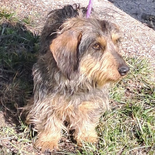 Rauhhaardackl Lava ist in der Nähe unseres Partnertierheims allein auf der Straße umher gelaufen.