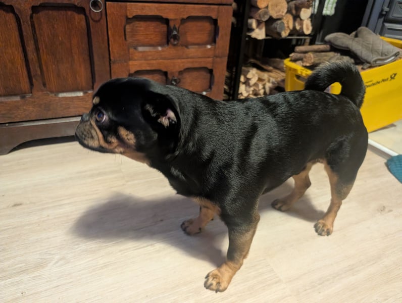 Mein Retro Mops Spyke ist 3 Jahre jung, sehr lieb und Rudeltauglich. Seine Oma ist ein Mops und sein Opa Deutscher Pinscher. Er ist gesund und hat schon erfolgreich gedeckt.