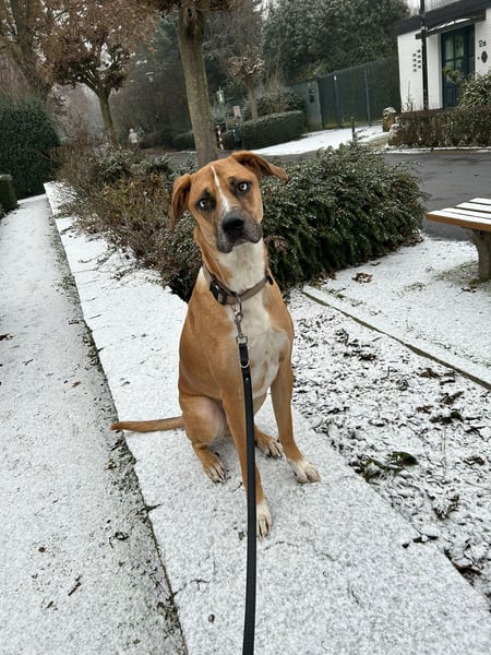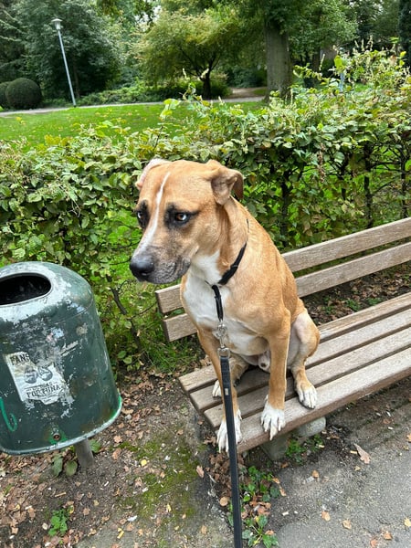 Hallo, ich bin Odin. Ich bin 4 Jahre alt und bin ein Schäferhund/Rhodesien Ridgeback Mischling. Im Gegensatz zu anderen Artgenossen bin ich viel größer aber fühle mich nicht so. Ich freue mich über jeden Menschen den ich kennenlerne. Draußen komme ich mit anderen Hunden sehr gut klar außer wenn ein anderer Hund mich anknurrt oder anbellt, das gefällt mir gar nicht. Sobald mir ein Hund entgegenkommt, lege ich mich immer hin und zeige den anderen Hund wie ich spielen möchte. Ich laufe sehr gut an der Leine und ziehe gar nicht, außer es kommt ein Hase oder eine Katze vorbei. Wenn ich draußen unterwegs bin, bin ich in meiner eigenen Welt und höre nicht immer zu, weil die Gerüche und Natur zu spannend sind. Zuhause bin ich lieber ein Einzelkind, weil ich nicht gerne Futter, Spielzeug oder Streicheleinheiten teile. Mit Kindern komme ich soweit klar, aber ich mag es gar nicht wenn man auf mir rum klettert oder mich einengt, deshalb lieber ältere Kinder. Ansonsten bin ich ein sehr ruhiger Hund der nur ganz selten mal nach Aufmerksamkeit schreit und gestreichelt werden will. Das gekochte Essen von meinen Besitzern finde ich viel leckerer als meins und komme auch ganz nah um zu schnuppern. Ich bin sehr lieb zu meinen Besitzern und kuscheln gerne wenn ich müde bin oder aufstehe. Manchmal bin ich sehr aufdringlich, wenn ich raus will, weil es für mich nichts schöneres gibt als draußen zu sein. Ich zeige dir auch deutlich ob mir die Runde ausgereicht hat oder nicht, sollte die Runde mir nicht reichen, dann setze ich mich hin und möchte nicht weiter laufen, also brauche ich dann ein Moment. Achja, ich kann manchmal ein kleiner Sturkopf sein. Ich schließe eigentlich ganz schnell Menschen in mein Herz und vertraue direkt. Ich würde mich über einen kennenlernen freuen.