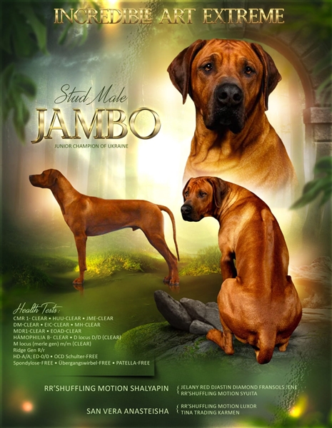Geboren wurde Jambo am 09.09.2020 in Moskau, Russland und ist ein topfitter junger Rüde, der frisches Blut nach Deutschland bringt. Gefahr von Inzucht dadurch um ein Vielfaches minimiert, wie es leider heutzutage oft vorkommt.
