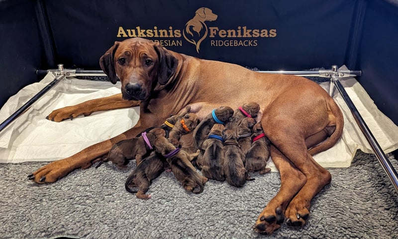 The Rhodesian ridgeback kennel "Auksinis Feniksas" was founded in 2006 in Lithuania. We have many years of experience, and the puppies we have bred puppies that live in many countries of the world. We have bred not only multiple exhibition champions, but also champions of club and specialty shows, Lure Coursing and bloodtracking champions.