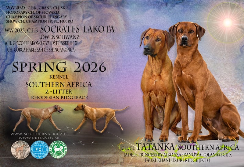 Hodowla Southern Africa (FCI)Zajmujemy się odpowiedzialną hodowlą Ridgebacków, łącząc doskonały eksterier, stabilny charakter i zdrowie. Nasze psy są członkami rodziny, stawiamy na doskonałą socjalizację szczeniąt, co procentuje podatniością na szkoleni