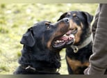 Unser Rotti ist noch deutlich vom alten Schlag, er ist souvären und abgeklärt mit seinen Menschen und auch gegenüber Hunden immer ein ein fairer Kumpel.