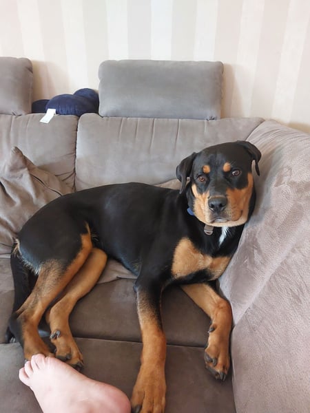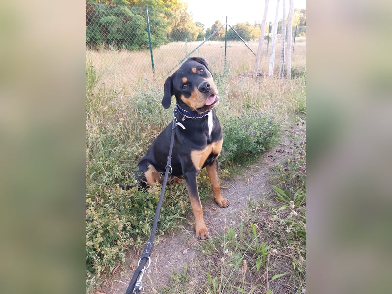 schweren Herzens möchten wir unsere Hündin Eva in liebevolle Hände abgeben. Eva ist eine kastrierte Rottweiler-Sennenhund-Mischlingsdame und wird im November 2 Jahre alt.